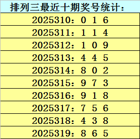 上期回顾:排列三第2025319期开奖号码为865,历史上组选出现52次,直选出现12次。