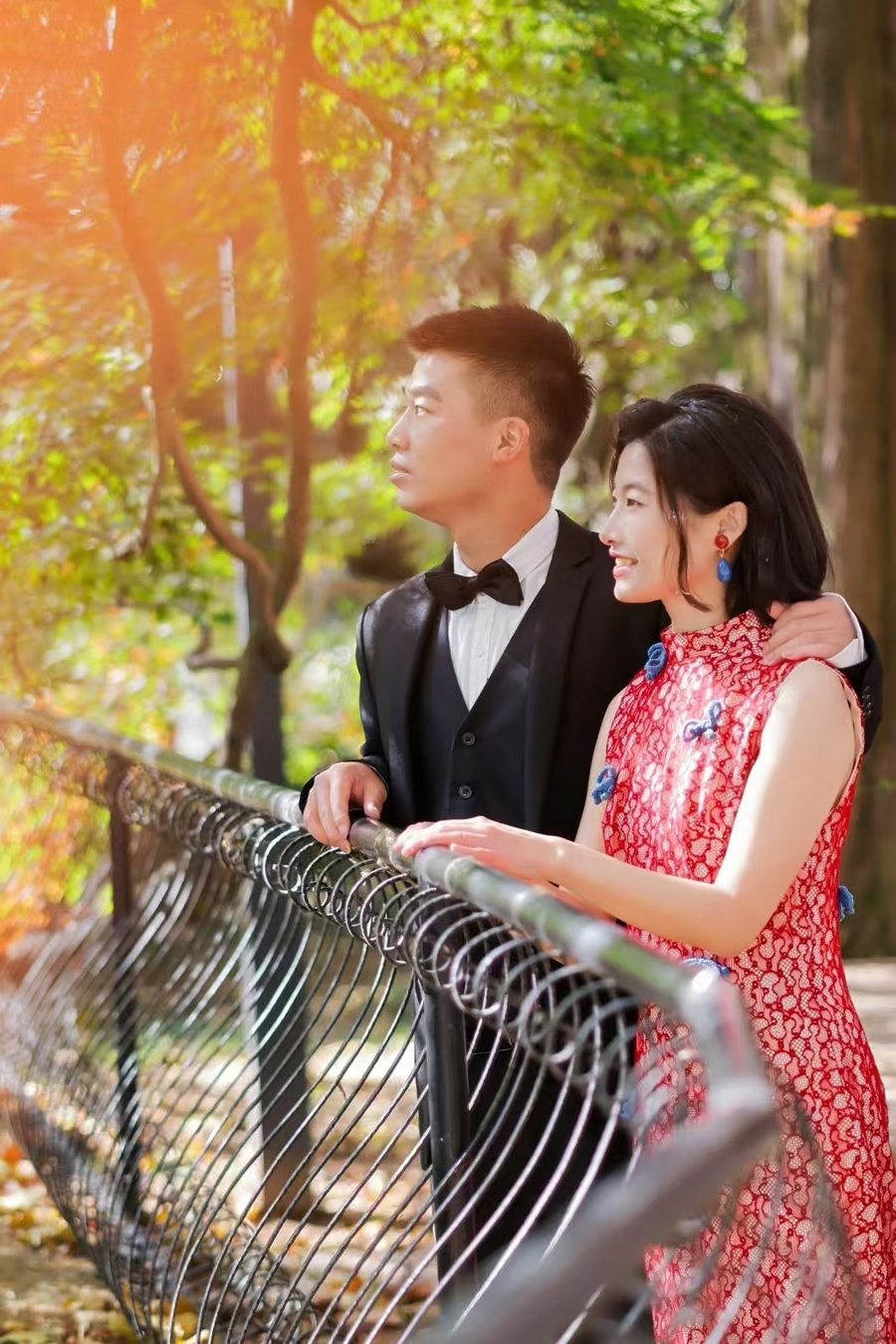 活动现场最动人的风景,莫过于多对身着婚纱礼服的新人。红枫似火,随风轻轻摇曳,与新人的白纱、红妆相互映衬。他们在漫山红枫与百年别墅的见证下,定格幸福瞬间。不少游客特意穿着民国风服饰,在这些藏着秋意的建筑间打卡拍照。“红枫、别墅、青石板路,每一处都太出片了!”来自上海的游客李女士说,她和朋友提前做了攻略,专门来打卡莫干山。“这样的盛景,值得跨越山海奔赴。”